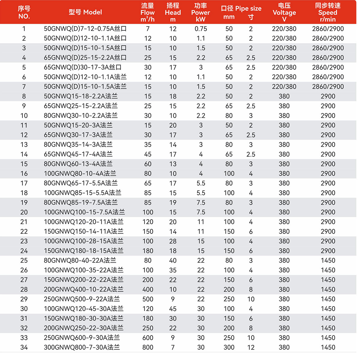 本公司生产的GNWQ泵系列具有革命的水力设计,保证了泵在长期运行过程中高效、可靠及无故障的工作状态。GNWQ泵系列从两个方面节省产品生命周期成本。一方面,运行过程中大幅度降低电耗,最大降低电耗可达50%,另一方面,运行过程中少维护或免维护,这是因为: GNWQ泵系列是市场上最高效的潜污泵。 GNWQ泵系列能长期保持高效,即便是在含有大量颗粒和纤维的介质中。 GNWQ泵系列有着卓越的不堵塞特性,排除了堵塞的风险。